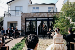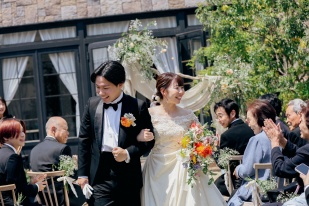 ガーデンにはクローバーが咲いて緑が多いので、春らしいガーデン挙式ができました。