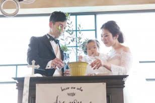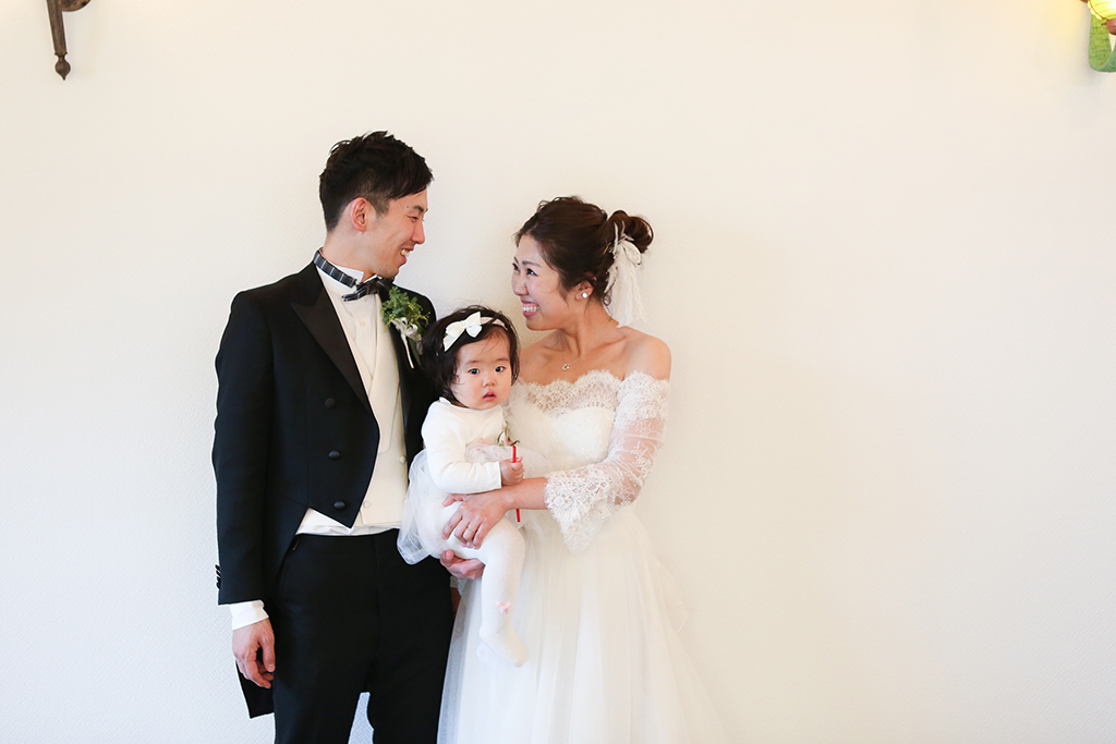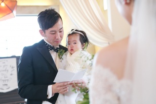 式が終わってからは義父母から、「手紙のサプライズに感動しました。子どものいる式もいいですね。ありがとう」と言ってもらい、友人には「知里らしい優しくてアットホームな式で凄く良かった」と連絡をもらいました。当日式中に娘が寝てしまい、予定通りに進まなかったけど、娘に合わせて臨機応変に内容を変更してくださりしたいことが全部出来ました。