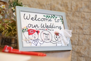 夫婦共通の趣味である『広島カープ』を式のテーマにしましたが、ケーキも会場の装花も席次表も、素敵なカープ仕様にしてくださり、夫婦そろって大満足!!
