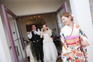 披露宴会場もひとつひとつの小さな小物までも可愛く、ドレスも着物もヴィンテージものですごく可愛くて、他の人とは被らないです。