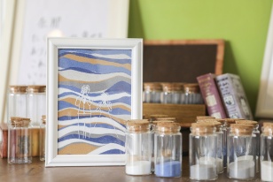 田んぼに囲まれたガーデンウエディングは唯一無二です。バージンロードに描かれた文字はお気に入りです!
