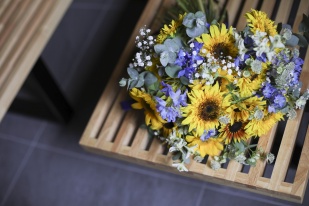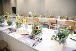 会場のお花もブーケもケーキもひまわりいっぱい!