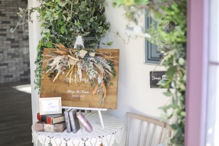 私の大好きな自然に囲まれた式場で、大好きなユーカリの葉を基調とした装飾、とてもアットホームで素敵な空間!