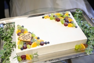 岡山のピオーネ、シャインマスカットを使ってくださった前菜や、ウエディングケーキはとても好評でした。