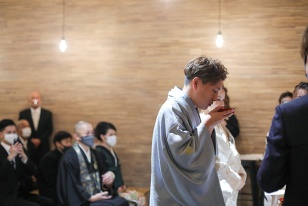 挙式は、チャペル風な会場にも関わらず私たちの意向により仏前式で行わせていただきました。