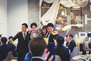 アイアンナッツ側で、家族との食事会をして、その後友達との披露宴という2部制を提案していただきました。食事会では親族だけでのアットホームな感じで自由に話もできました。友だちの方ではゲームや、お色直しで衣装を着たりとにかく楽しくさせてもらいました。どんな提案にもノリノリで受け入れてくれるスタッフの方々ばかりでありがたかったです!私たちは家族婚だったのですが娘の面倒も率先してスタッフの方がしてくれました。ミルクやオムツまで替えてくれて全く心配することなく楽しむことができました。