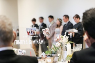 また、各テーブルには新郎新婦の名前入りのアクリル板を設置してくださりました。