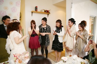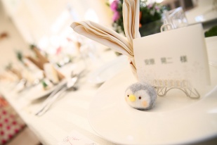 更に新婦亜美さんが1つ1つ手作りした羊毛フェルトのアニマルバッチを全員つけて会場全体がひとつに!