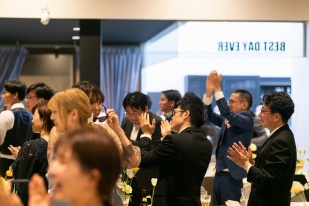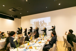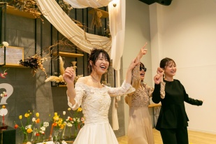 ふたりも一緒に考えた余興では会場にいるみんなが一つになっておどったり。