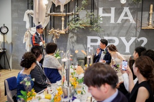 ホワイトドラマさんで挙げることを決めたのは、まだホワイトドラマさんが建設中だった3年前。アイアンナッツさんのブライダルフェアに参加し、めちゃくちゃ美味しい料理、スタッフ皆さんの丁寧で温かい対応、代表の船曳さんの結婚式に対する想いに感動し、即決でした。