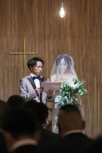 挙式会場は木の温もりが感じられ、照明の雰囲気などもとてもよかったです。