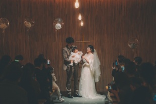 挙式会場は木とアイアンの雰囲気が良く、ゲストとの距離も近く感じられる会場です。窓などが無い分、特別な雰囲気が味わえてチャペルでのサプライズムービーなど検討されている方は映画館のようで素敵なのでおすすめです。