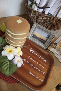 新婦の佳奈さんの妹様も風ノウタで結婚式をしてくださり、ご姉妹そろってお手伝いさせていただきました。ハワイがテーマの結婚式!会場のアレンジも斬新に生のパインにお花を生け、ブーケトスに続いて、ハンバーグトス!!お料理上手の佳奈さんにより、ロコモコ丼に大変身!!キャッチしたゲストの方には特別にお料理一品追加です♡