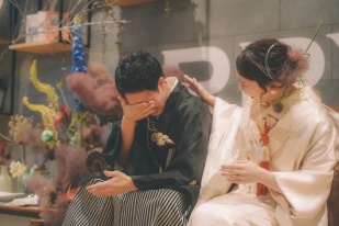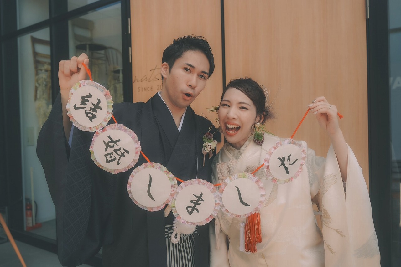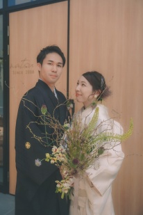 大久保さんとの毎回の打ち合わせは楽しく、なんか変わったことしたいんですと言うアバウトな相談にも、あれやこれやとたくさんアイディアを出してくれました。クロージング番傘や誓いの言葉の太鼓など楽しいアイディアをありがとうございました。当日も顔見る度に安心をしてました。