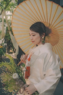 フローリストのなみさんには前撮りのブーケからお世話になっていて、とにかく可愛いんです。色と雰囲気だけ伝えたフラワービュッフェは想像の何倍も可愛いものになり、松の扇子や和も洋も合う枝物ブーケもセンスが良すぎて感動ものでした。