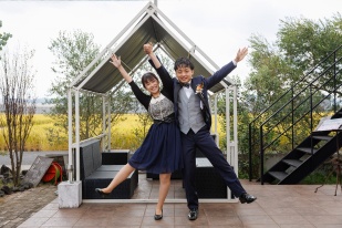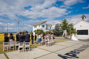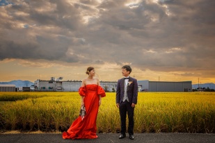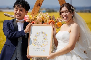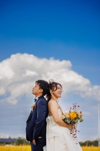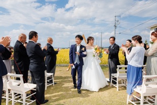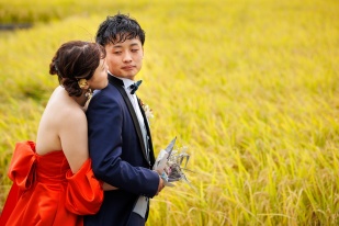 ずっと憧れだった黄金色の田園に囲まれての結婚式を行うことができました。