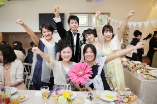 新婦朋加さんのもうひとつのメインは大学時代4年間を捧げた、チアリーディング!!その時の仲間と一緒に渾身の演技を見せてくれ、ゲストもスタッフもみんなが一体となりました。