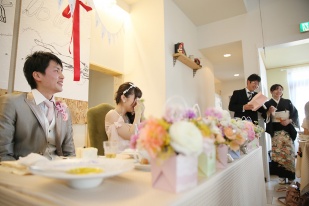披露宴会場に入れば完全に現実とはかけ離れた世界で女の子たちからは「可愛いー♪」の嵐!温もりたっぷりの披露宴会場。彼の会社の上司の方や親族もみーんな気にいってくれました!普段はレストランなので一度足を運んでみて下さい!