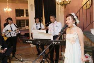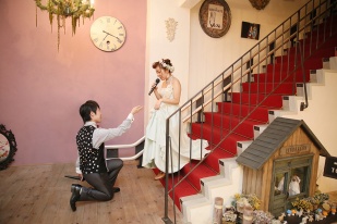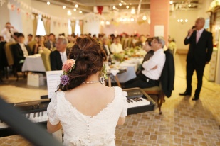 和美さんミュージカルが大好きで、会場のコーディネートにもお花とお花の間に音符がぶら下がっていたり、入場の仕方もこだわって、まるでミュージカルの登場シーンのようでした。