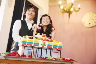 そんな思い出の詰まったセブンイレブン型のウエディングケーキのお店の部分はあつしさんの手作りです。