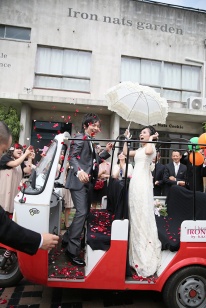 専属のヘアメイクさんがいて、ヘアチェンジをたくさん変えたこともすごく楽しかったです。新郎のタキシードも変わったものや可愛らしいものもあり、とても満足です。本当いい式にしていただきました。アイアンナッツでしてよかったです。