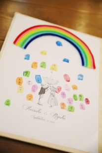 プロポーズでの思い出の場所での前撮りや、たくさんの想いを詰め込んで考えたテーマの“虹”をあちこちに散りばめて…涼子さんと涼子さんのお母様の大好きなヒマワリの花で会場を埋め尽くしました♪
