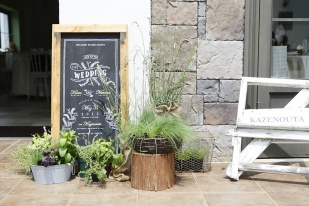 健太さん手作りのオリジナル招待状・席次表やウェルカムボードにはスタッフ一同感動!会場の中には流木やハーブ、多肉植物を大人ナチュラルにコーディネートし、式が終わったらゲストの方に全て持って帰っていただきました。