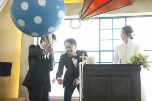 とにかく皆さん面白い個性派揃いで楽しいです。もちろん会場もステキです。ガーデンはもちろんですが、チャペルにはダイヤモンドのオブジェが飾られていて個性的。バージンロードにはビートルズの歌詞が描かれていたりと、、いたるところに遊び心が満載!