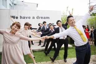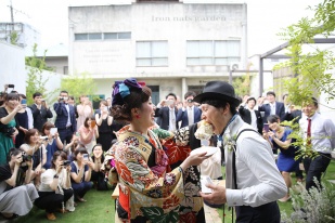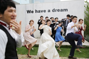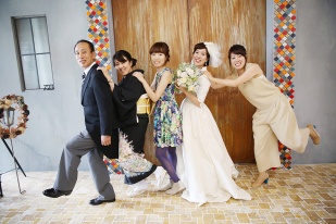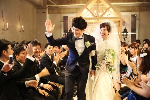 人前式での新郎のブーケ作り、リングリレー、ケーキカット、柱への落書き等々、ゲストと新郎新婦が一緒になってワイワイできる環境で、式全体が非常に盛り上がった印象です。ゲストの方からも「こんな式は初めて」と楽しんで頂けました。