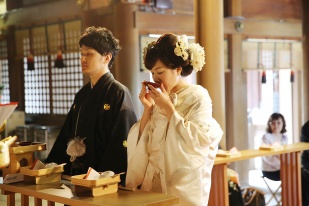 吉備津彦神社でご親族の方だけで神前式をしたのち、アイアンナッツでご友人・職場の方も加わって人前式をしました。神社挙式ってすてきだな~~と思いました!