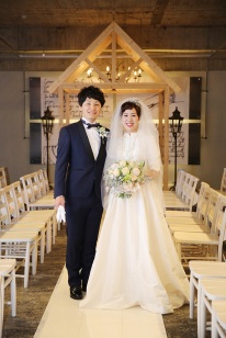 挙式会場は他の式場と違って、デザインがすごく個性的でスタイリッシュな会場でした。ゲストとの距離も近く、また参列席は、両サイドのゲストが向かい合う形なので、より一体感が生まれました。