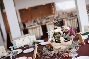 会場は光が良く差し込み、全体的に明るいやわらかい雰囲気です。披露宴会場の雰囲気は、テーブルクロスやお花でだいぶ変わって来ると思います。