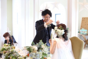 風ノウタへ見学へ行く前に他の会場に決めていたのですが、風ノウタの式場のかわいさ、ドレスのデザイン、料理の美味しさ、なによりプランナーの皆さんの結婚式へ対しての熱い思いに感動して、こちらで結婚式をお願いさせていただきました。