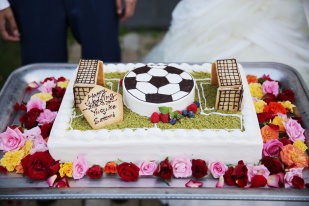 ウェディングケーキは私たち夫婦がフットサルで知り合った為、可愛いフットサルコートを作ってくださいました。そして誕生日のゲストがいたのでお祝いプレートまで作ってくださりみんなで盛大にお祝いすることも出来ました。料理も美味しく、妊婦のゲストの方へも配慮していただきよかったです。